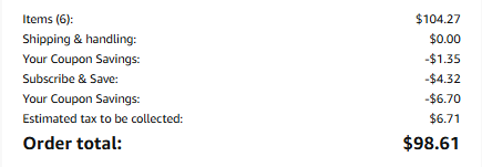 You CAN apply a 5% Subscribe and Save discount as well as Subscribe and Save coupons in the cart before you check out to save even more! The total BEFORE coupons and Subscribe and Save discounts needs to be over $100 in order to qualify for the $30 Amazon Credit.