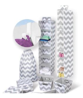 Get this 30 Piece Storage Bundle for $29.99 (regularly $49.99). Choose from black or gray and white chevron. This is perfect for a college student of even just to organize in your own home. 30-piece bundle includes: