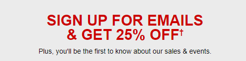 - Get 25% off your first order after you sign up for their emails.