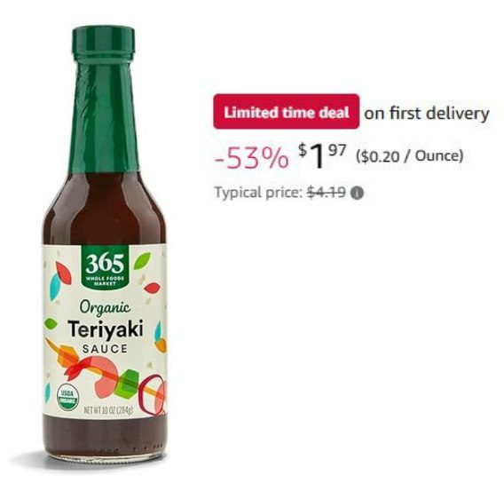 365 by Whole Foods Market, Organic Teriyaki Sauce $2.32 (reg $4.19)