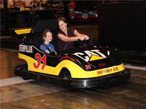 The activities include an arcade room with over 100 games, bumper cars, mini bowling, laser tag, go karts, and glow-in-the-dark mini golf.