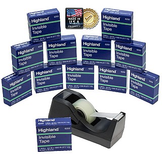 - (1) 3M Highland Desktop Tape Dispenser in Black with 12 rolls of 3M Highland Invisible Tape