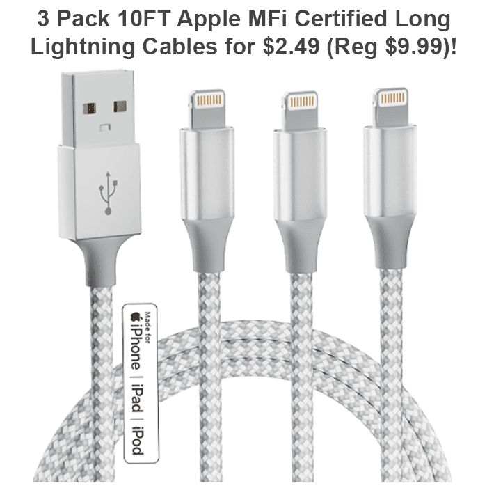 3pack 10FT Apple MFi Certified Long Lightning Cables for $9.99