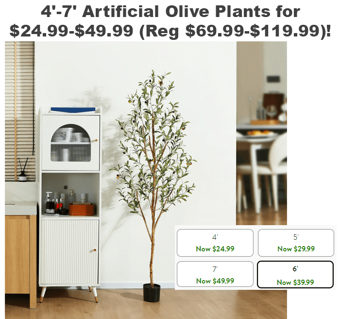 4′-7′ Artificial Olive Plants for $24.99 – $49.99 (Reg $69.99 – $119.99)!