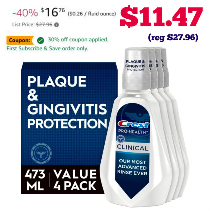 4-Count Crest Pro-Health Clinical Mouthwash with CPC $17.64 (reg $27.96)