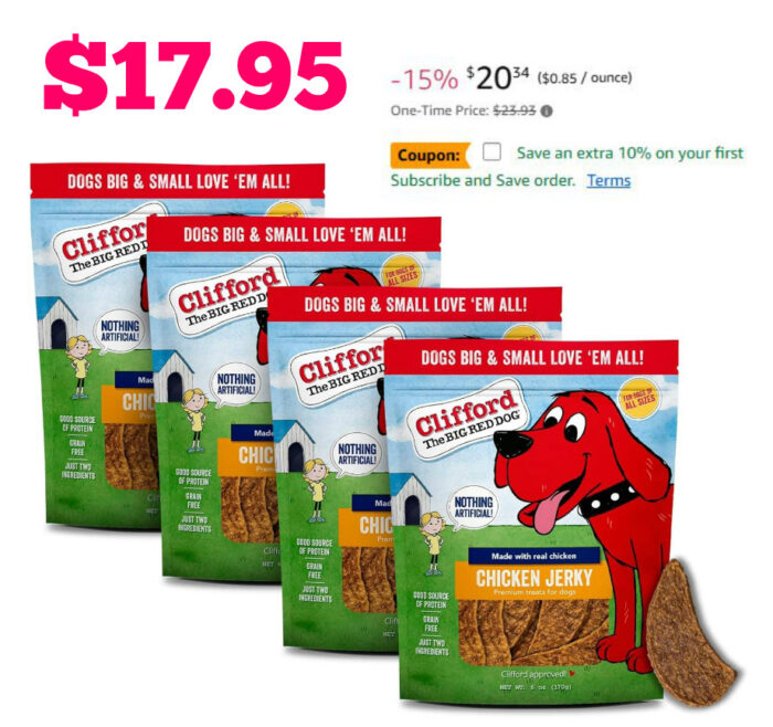 4-Pack Clifford The Big Red Dog Treats – Real Chicken Jerky $23.93