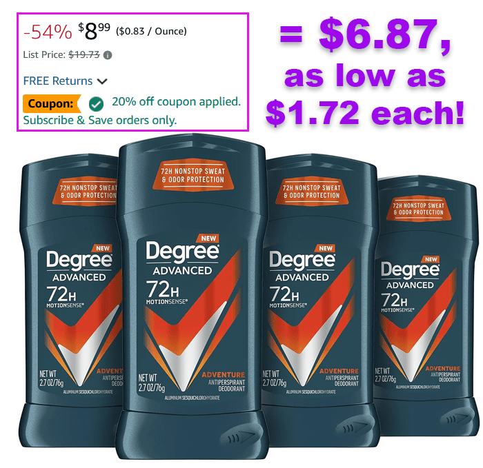 4-Pack Degree Men Antiperspirant Deodorant on sale for $9.58(reg $19.73)