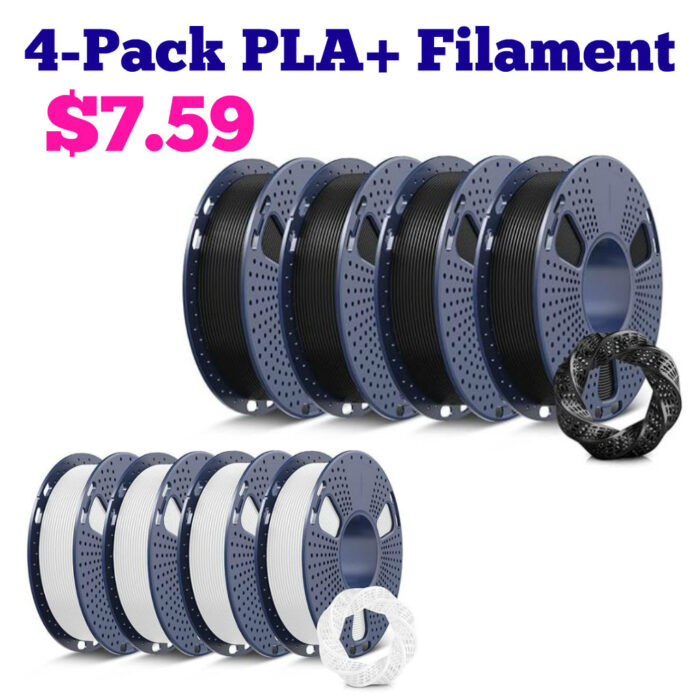 This is a crazy steal on PLA+ 3D Printer Filament. Choose from Black or White bundles.