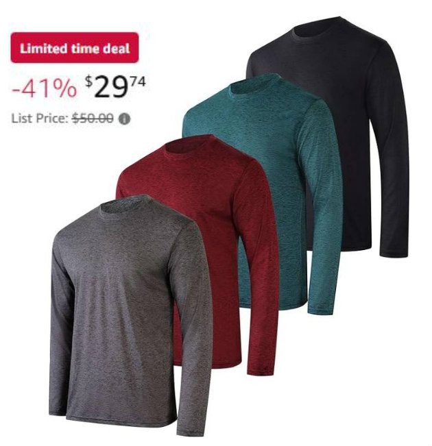 4-Pack Real Essentials Men’s Dry-Fit UV Moisture Wicking Long Sleeve Shirts $29.75 (reg $50.00)