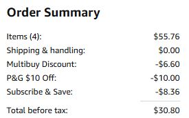 - Add FOUR of these to your Subscribe & Save order to get the 5% or 15% discount. (HINT: As long as you have 5 items in your order by the time your order ships, you’ll get that higher discount!)