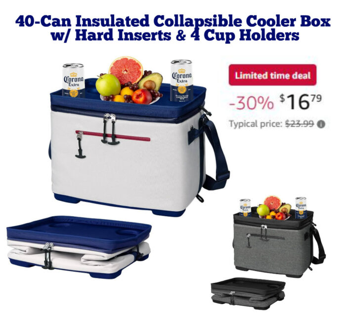 40-Can Insulated Collapsible Cooler Box w/ Hard Inserts & 4 Cup Holders $16.79 (reg $23.99)
