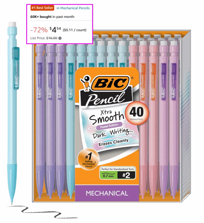 40-Count BIC Xtra-Smooth Pastel Mechanical Pencils with Erasers for $6.49 (reg $16.00)