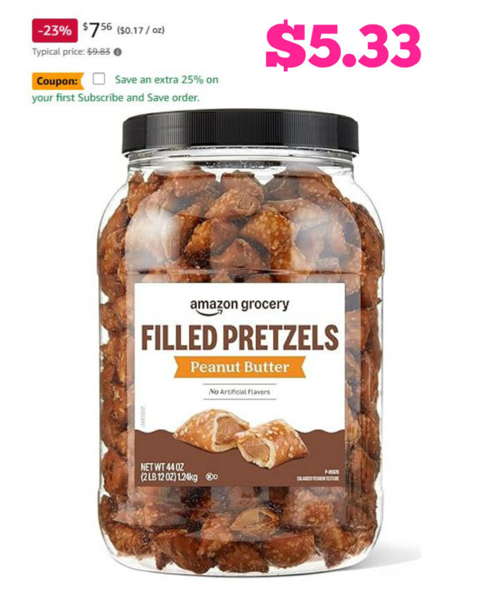 44 oz Amazon Grocery, Peanut Butter Filled Pretzels $8.90 (reg $9.83)