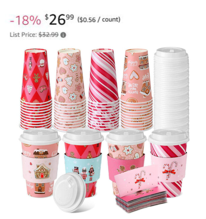 48 Pack 16 oz Christmas Disposable Coffee Cups $26.99 (reg $32.99)