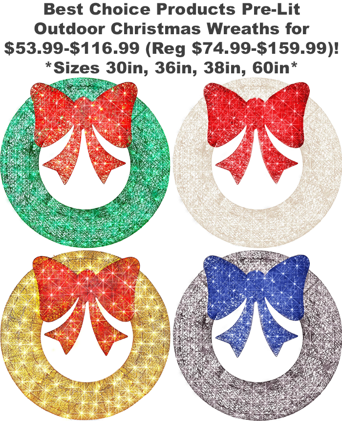 Best Choice Products Pre-Lit Outdoor Christmas Wreaths for $53.99 – $116.99 (Reg $74.99 – $159.99)! *Sizes 30in, 36in, 38in, 60in*