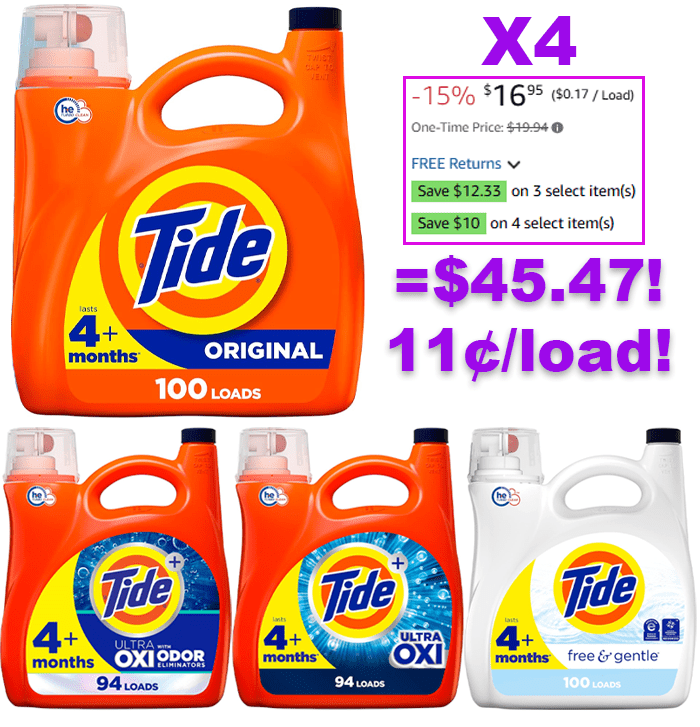 Tide Laundry Detergent Liquid, Original Scent, HE Compatible, 100 Loads, 132 fl oz