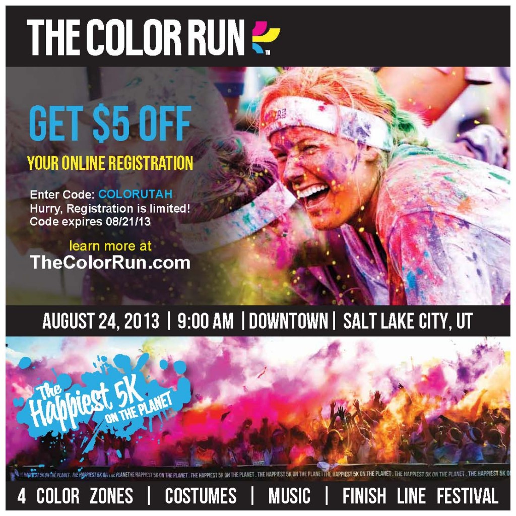 It is the happiest 5K on the Planet, after all! Registration is currently going on. It is going to sell out. Come and run with me. You will be able to save $5 by using the code COLORUTAH! The code expires on 8/21/13 but I am sure it will be sold out WELL before that. In fact, rumor is it will be sold out MUCH sooner than that!