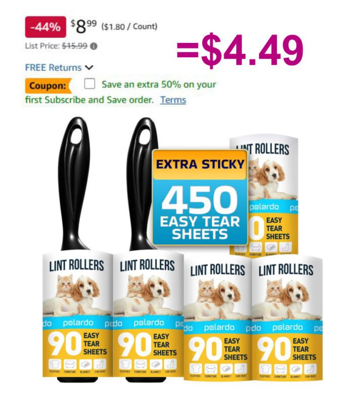 5 Large Lint Rollers for Pet Hair $9.99 (reg $15.99)