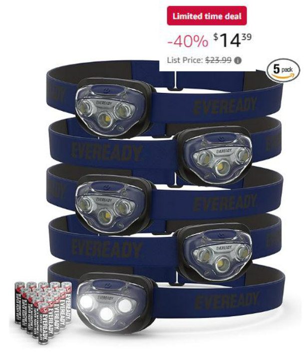 5-Pack EVEREADY LED Headlamps Pro200 $14.39 (reg $23.99)