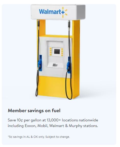 - Member savings on fuel of $0.10/gallon at 13,000+ locations nationwide including Exxon, Mobil, Walmart & Murphy stations. Plus, access member prices at Sam’s Club fuel centers.