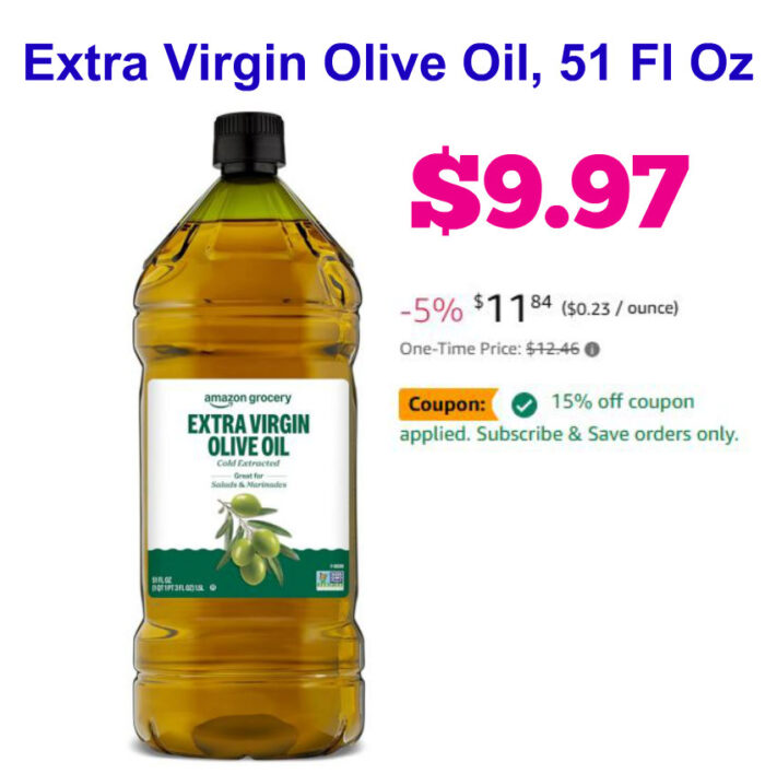 50 oz Amazon Fresh Extra Virgin Olive Oil $12.46