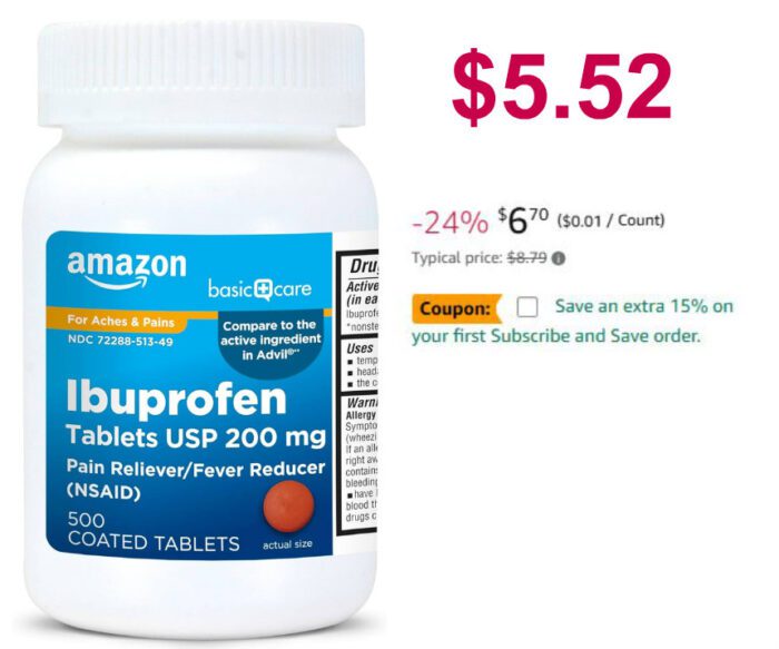 500-Count Amazon Ibuprofen Tablets 200 mg $7.88
