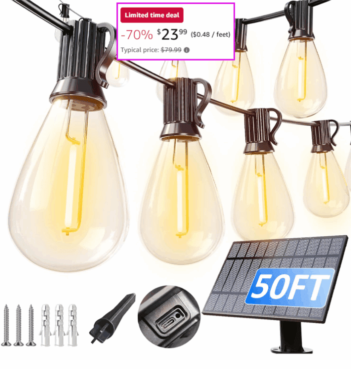 50FT Solar String Lights Outdoor Waterproof with 18+1 LED Bulbs for $23.99 (Reg $79.99)!