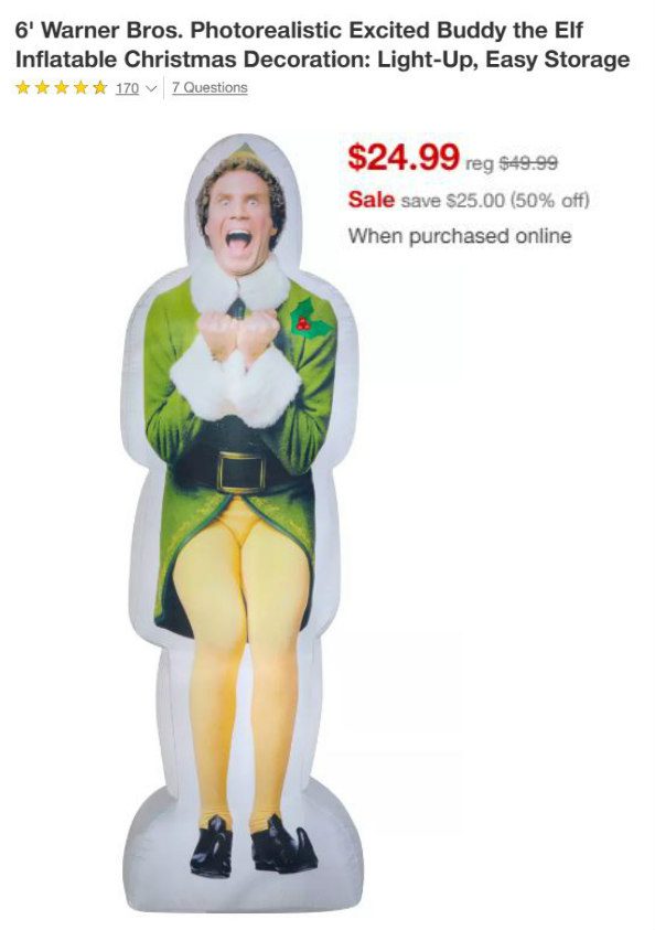 6′ Excited Buddy the Elf Inflatable Christmas Decoration $24.99 (reg $49.99)