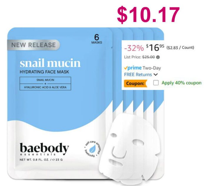 6-Pack Baebody Snail Mucin Mask $16.95 (reg $25.00)