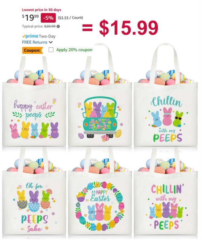 6-Pack Easter Canvas Tote Bags $19.99 (reg $20.99)