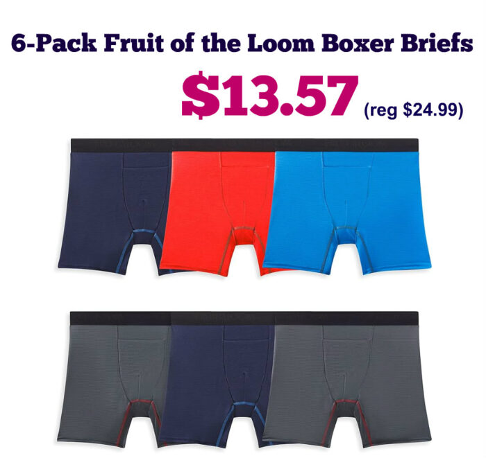 6-Pack Fruit of the Loom 4-Way Stretch Boxer Briefs $13.57 (reg $24.99)