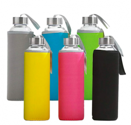 What an awesome deal for glass water bottles with multi-colored neoprene sleeves! These are 18oz bottles!