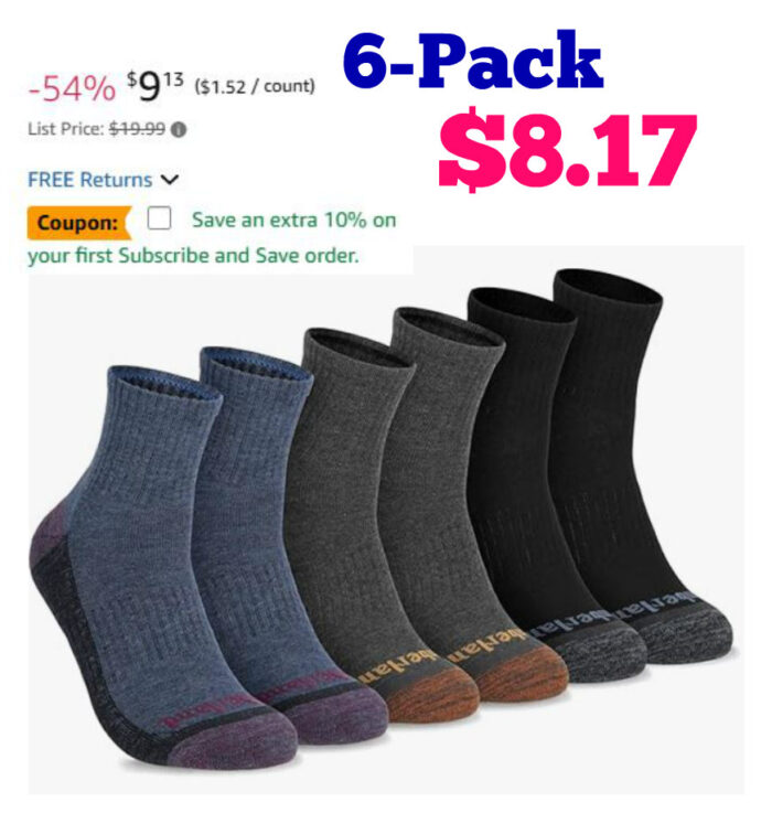 6-Pack Timberland Mens Socks $9.61 (reg $19.99)
