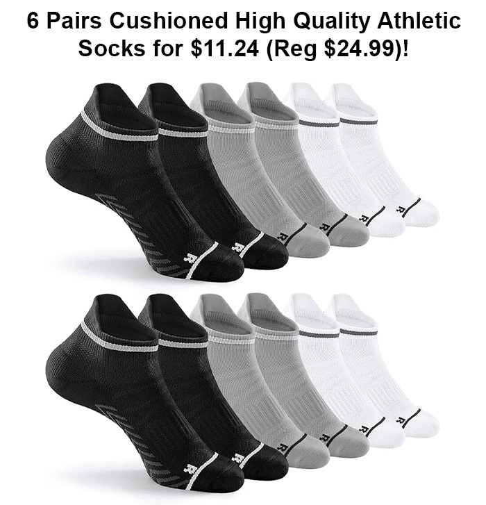 6 Pairs Cushioned High Quality Athletic Socks for $24.99