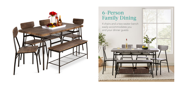 6-Piece Modern Dining Set w/ Storage Racks, Table, Bench, 4 Chairs – 55in for $279.99 (reg $299.99)