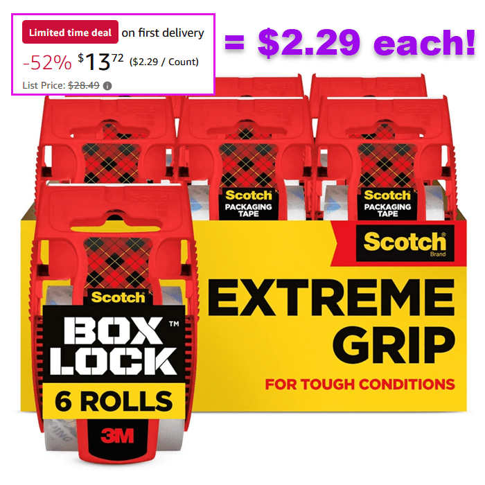 6 Rolls with Dispenser Scotch Box Lock Packaging Tape $14.44 (reg $28.49)