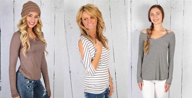 Check out these 6 styles of tops, each on sale for $8.99 (regularly $38.99)!