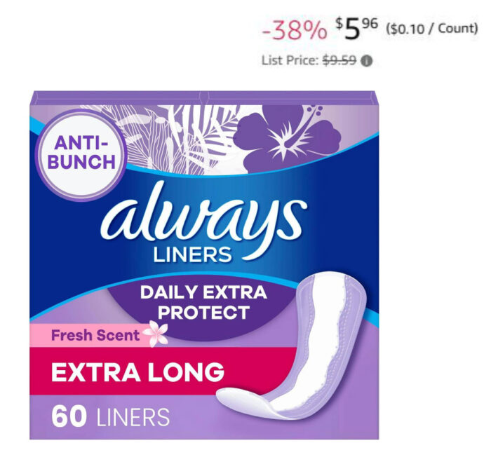 60-Count Always Daily Extra Protect Liners $6.27 (reg $9.59)