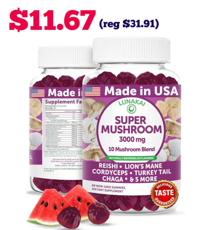 60-Count Lunakai Super Mushroom Gummies $25.95 (reg $31.91)