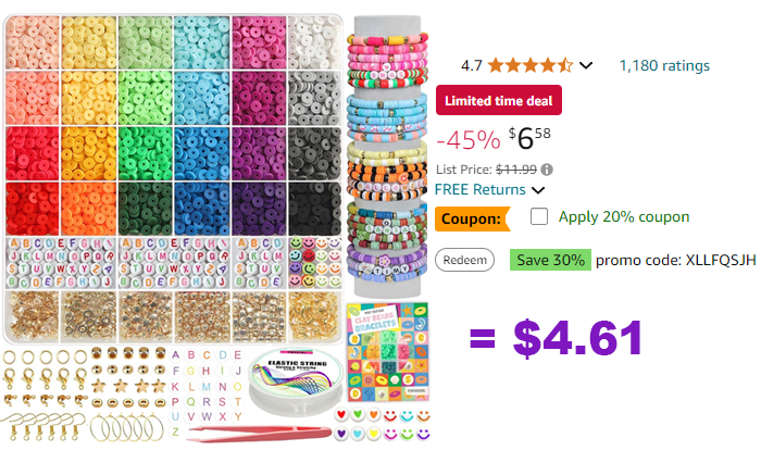 6000+PCS Clay Beads Bracelet Making Kit for $6.99 (reg $11.99)!