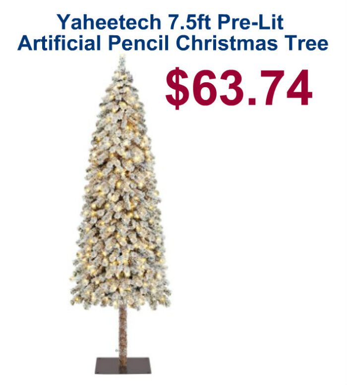 Yaheetech 7.5ft Pre-Lit Artificial Pencil Christmas Tree w/ 280 Incandescent Warm Lights $63.74 (reg $84.99)