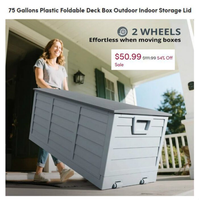 75 Gallons Plastic Foldable Deck Box $50.99 (reg $111.99)