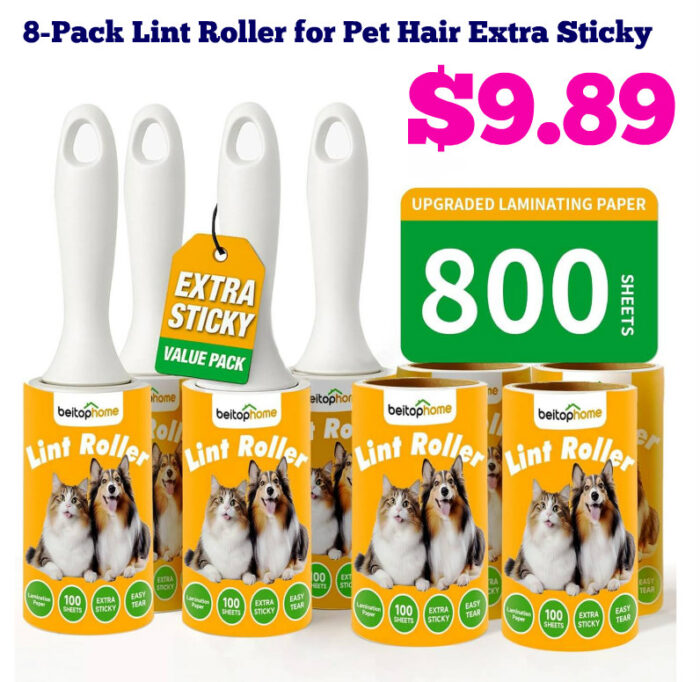 8-Pack Lint Roller for Pet Hair Extra Sticky $9.89 (reg $19.99)