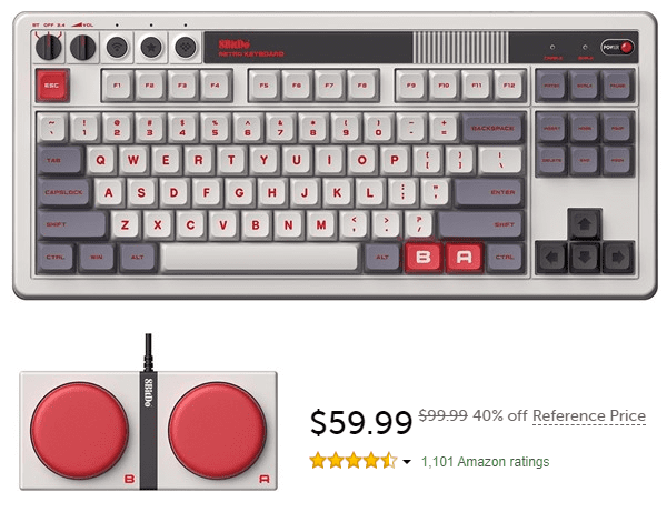 8Bitdo Retro Mechanical Keyboard, Bluetooth/2.4G/USB-C Hot Swappable Gaming Keyboard with 87 Keys, Dual Super Programmable Buttons for Windows and Android – N Edition for $59.99 (reg $99.99)