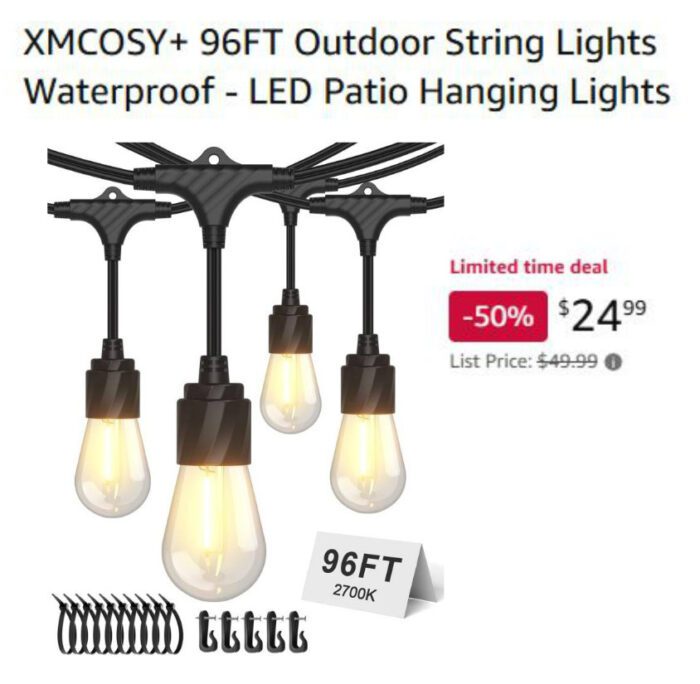 96FT Outdoor String Lights Waterproof – LED Patio Hanging Lights $24.99 (reg $49.99)