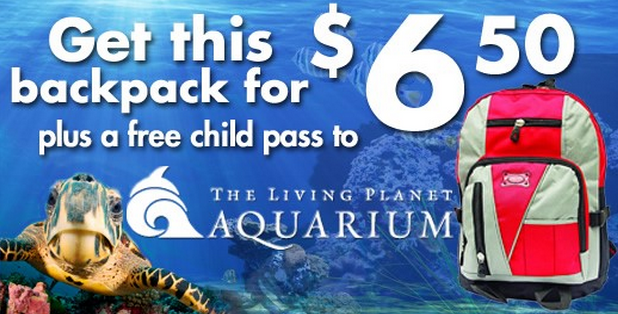 A backpack filled w/ supplies + a Living Planet Aquarium Ticket for only $6.50!!!