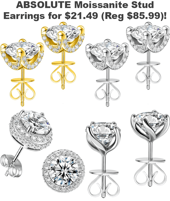 ABSOLUTE Moissanite Stud Earrings for $85.99