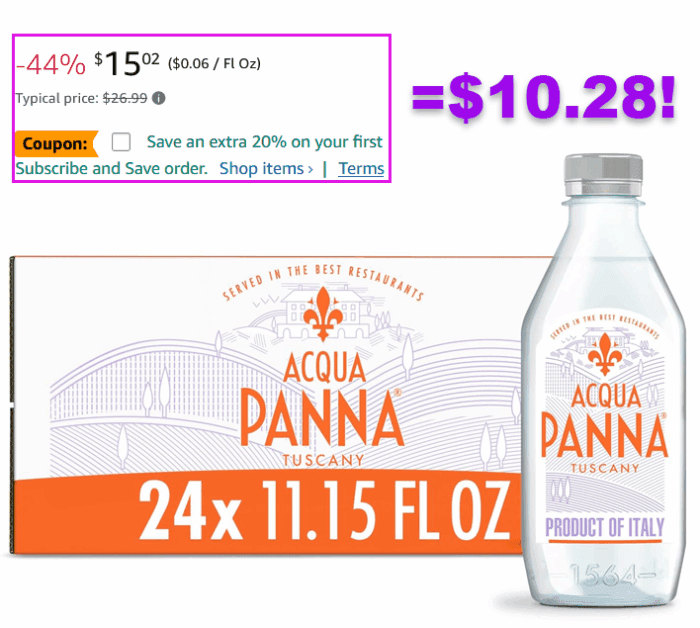 Acqua Panna Natural Spring Water, 11.15 FL OZ (24 Count) for $15.81 (Reg $26.99)