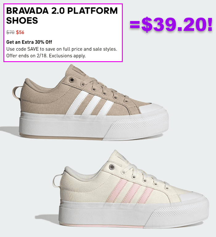 adidas Bravada 2.0 Platform Lift Shoes for $56 (Reg $70)!