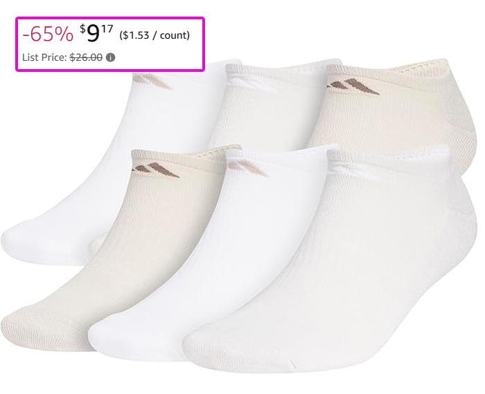 adidas Men’s Athletic Cushioned 6-Pack No Show Socks for $9.17 (Reg $26)!